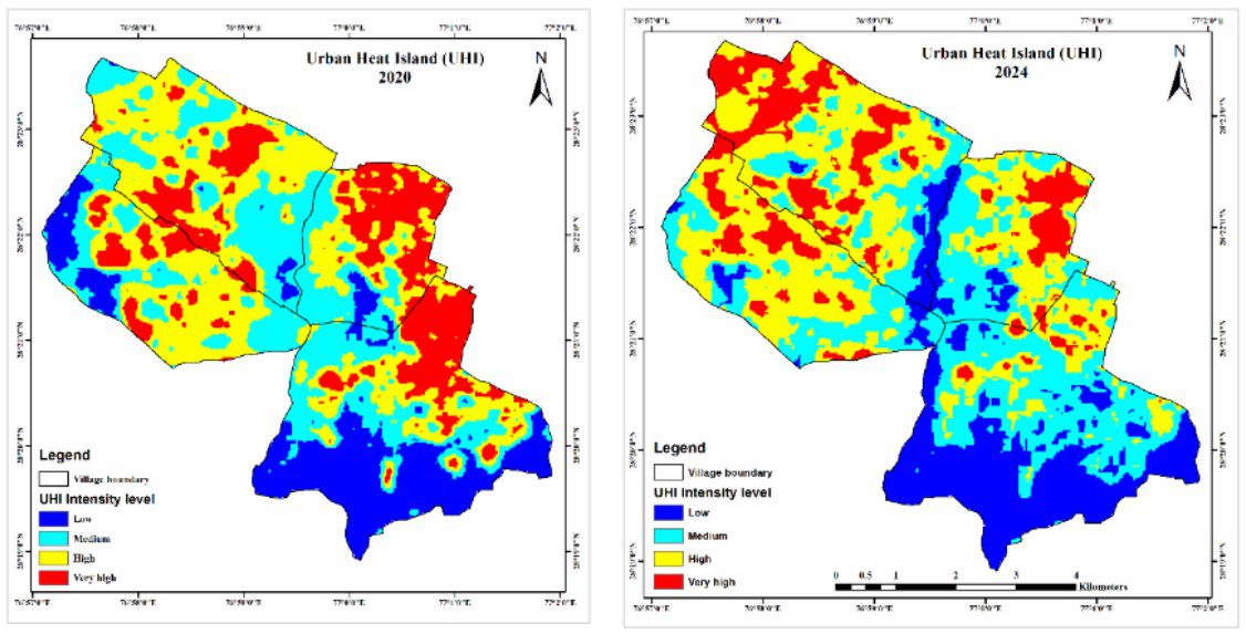 Figure- UHI map of the study area (2020 vs 2024)