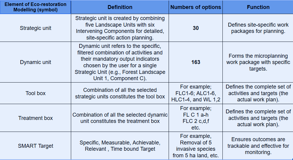 Table: Framework of the Eco-restoration with strategic and dynamic units for further selection of project targets to carry out successful implementation